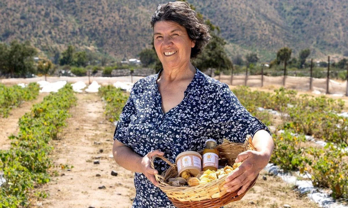 Eco Goldie nace en Pedegua, comuna de Petorca, Región de Valparaíso, de la mano de Berta Aravena, agricultora con más de 20 años de experiencia en cultivos tradicionales. Frente a los desafíos de la sequía y el cambio climático, Berta decidió apostar por su cultivo innovador: el Golden Berry (physalis o uchuva), una fruta rica en antioxidantes y reconocida por sus beneficios nutricionales.